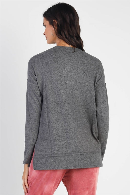 Cherish Apparel Flannel Long Sleeve Slit Top
