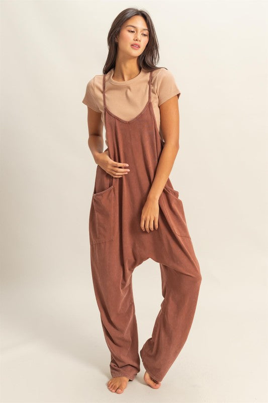 HYFVE Relaxed Fit Mineral Washed Overalls with Pockets