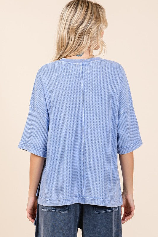 Mineral Wash Waffle Knit Short Sleeve Top