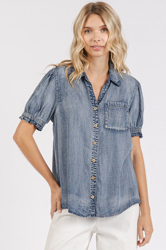 Mittoshop Airflow Short Bubble Sleeve Button Down Shirt