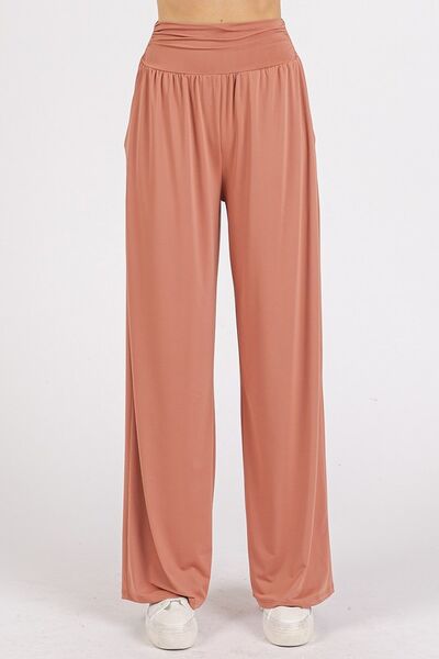 Mittoshop Stretch Banded Waist Wide Leg Pants with Pockets