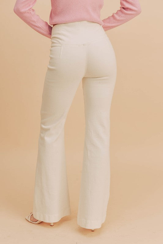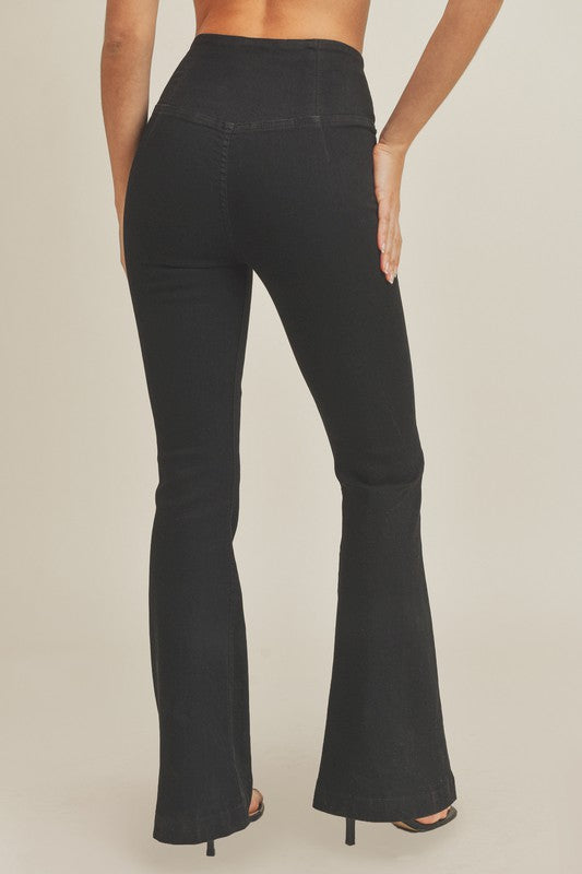 Alaia denim flare jeans is designed with our favorite stretchy denim in a forever flattering flare pant silhouette featuring a high waist with elastic wrap for comfort and ease. She is perfect for going from your daytime thing to dressed up for date night.