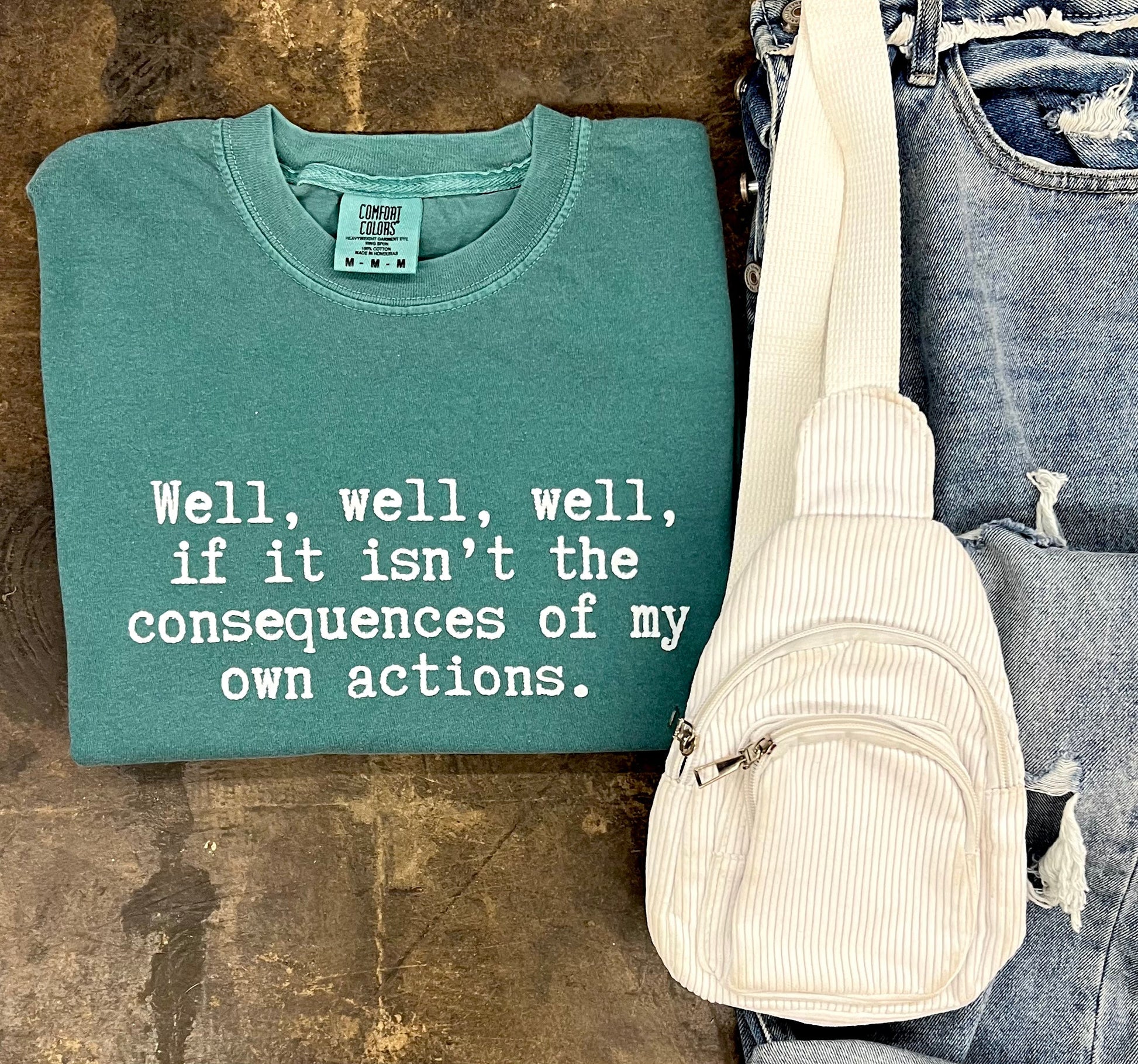 DTF printed on comfort colors emerald. Unisex + TTS fit! These are on a 7-10 business day TAT from the friday after you order. We will CLOSE these out january 24th at 10am CST for good!