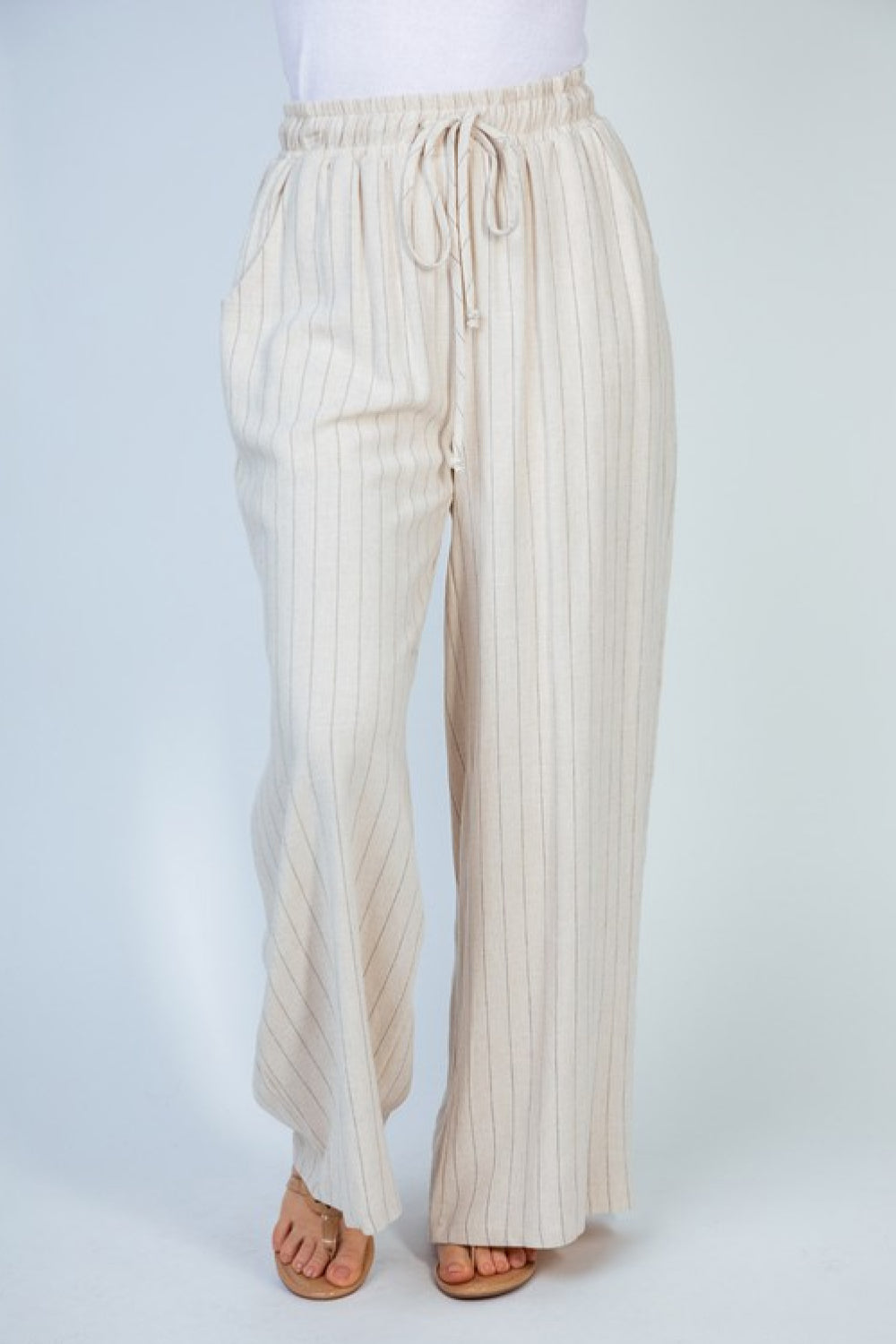 Linen is a must for warm weather, and these linin-blend pants will not disappoint! Subtle striping lengthens your legs, and the elastic waist and pull-on design will keep you comfortable, just as the fabric will keep you cool. Add a bodysuit for an effortlessly chic look!